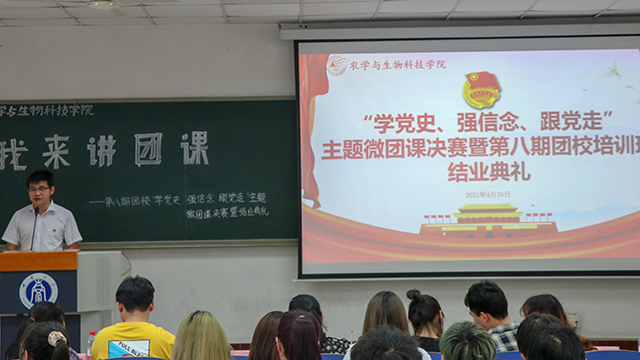 最后,本次结业典礼和团课讲演大赛在中国共产主义青年团团歌的歌声里落下了帷幕,庄严的团歌萦绕耳畔,将光荣的使命传递给一代又一代进步的中国青年,激励并引领着无数青年学子开创了一个又一个伟大的事业。作为新时代农科学子,身处两个一百年奋斗目标的历史交汇期,我们责任在肩,使命重大。身为光荣的共青团员,我们更应学习优秀青年的光荣事迹,高举中国特色社会主义伟大旗帜,为建设美丽乡村和实现社会主义现代化贡献自己的青春力量!