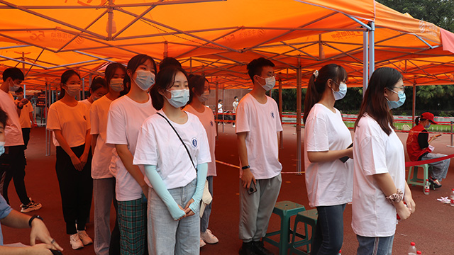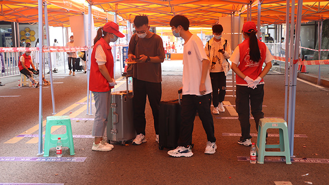 金秋送爽,丹桂飘香,又是一年迎新时,变的是迎新的志愿者队伍,不变的是每一届学长学姐们对新生的照顾与关爱。面对近期严峻复杂的疫情防控形势和“外防输入、内防反弹”压力持续增大的局面,学校为筑牢疫情防控安全防线,根据形势及时对今年的迎新方案作出调整,由学校统筹各学院志愿者在一号门、二号门、三号门、第三运动场等入口和中转站迎新工作服务点做好接站、秩序维护、人员引导、行李搬运等服务。接到迎新志愿服务最新方案后,best365英国在线体育官网立即在全院范围内广泛动员高年级同学积极报名参与到志愿服务工作中来,一共招募到165名志愿者,并于9月9日晚上召开线上会议对志愿者就工作流程、纪律要求、疫情防控细节等做集中培训。9月10日上午6点30分,best365英国在线体育官网志愿者在学校2号门迎新工作服务点正式参与到学校迎新工作中。