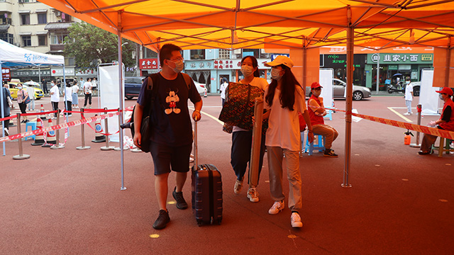 早上7点,2号门口一片红色,红的是横幅,红的是志愿者鲜艳的衣服,更是朝阳下学长学姐们的热情与温暖。志愿者们有序的帮助新同学搬运行李,指示方向。进入校门后,校门口防疫登记志愿者为每一位新生检查相关信息。学校安保人员及志愿者引导学生进行防疫登记并保持间距入校,对每一个入校人员进行登记测温,全力保证师生健康安全。志愿者们提着沉重的行李,推着箱子,同时细心的回答学弟学妹们的问题,介绍学校的布局。那一张张青春的面容,彰显着西大的朝气与蓬勃。一张张热情的笑脸,一句句亲切的问候,一项项贴心的服务,迎接着来自祖国各地的莘莘学子。不惧炎热的太阳,不辞辛劳地帮同学们把行李搬,让新同学切实感受到来着西南大学学长学姐的亲切和热情。