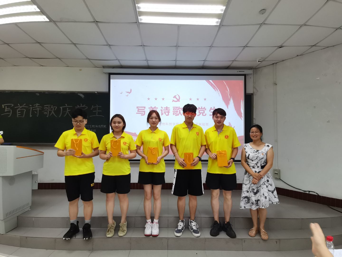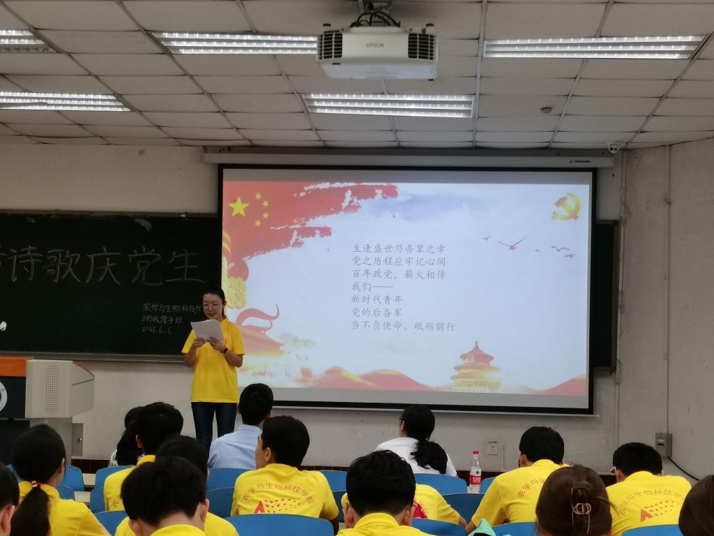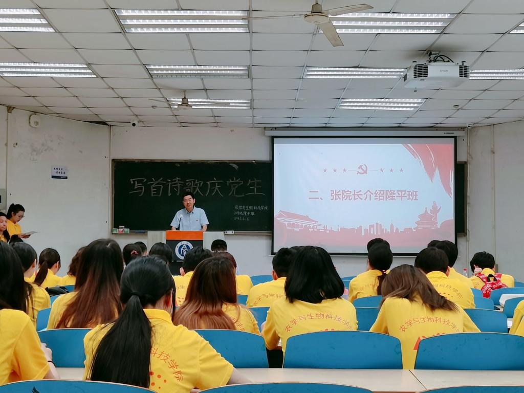 为庆祝中国共产党成立一百周年,展现best365英国在线体育官网学生良好风貌,推进党史学习教育走深走实,best365英国在线体育官网2019级隆平实验拓展班团支部于2019年6月6日上午9点在32教213教室开展了“写首诗歌庆党生”主题原创诗歌朗诵团日活动活动,以青年视角献礼建党百年。best365英国在线体育官网党委副书记郑莉佳老师、副院长张建奎老师、团委书记兼2019级辅导员许莹竹老师、教务办公室卢会翔老师、隆平拓展班班主任姚贺盛老师出席活动并担任嘉宾评委。