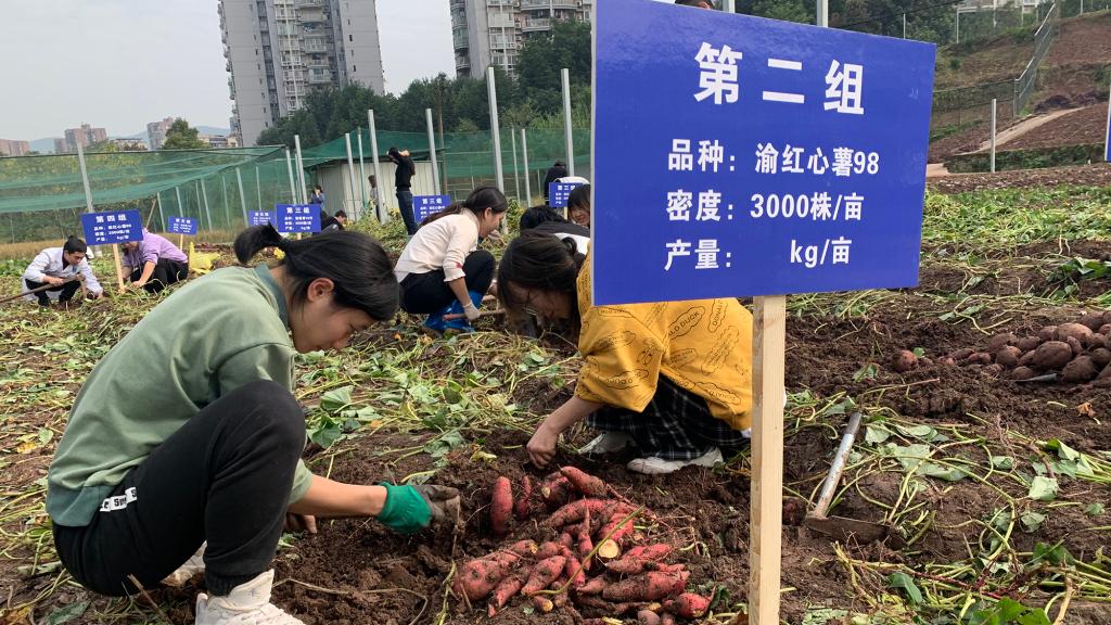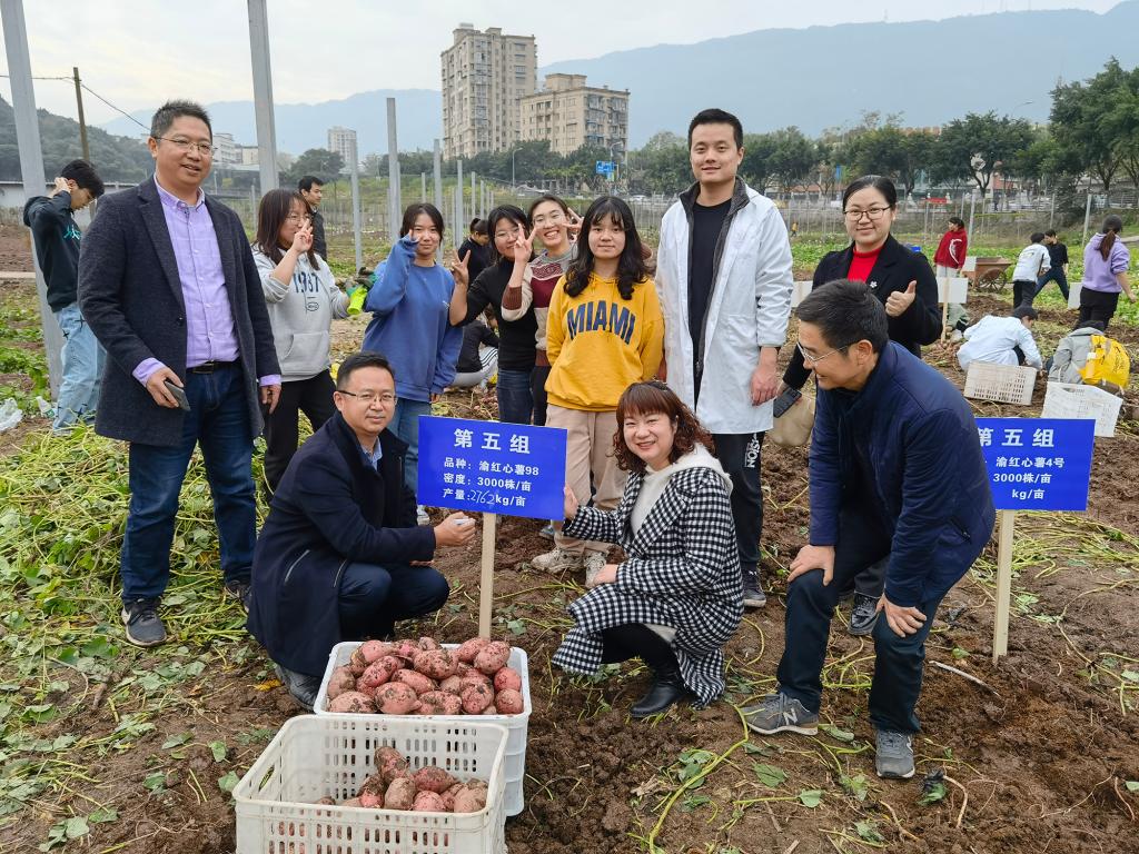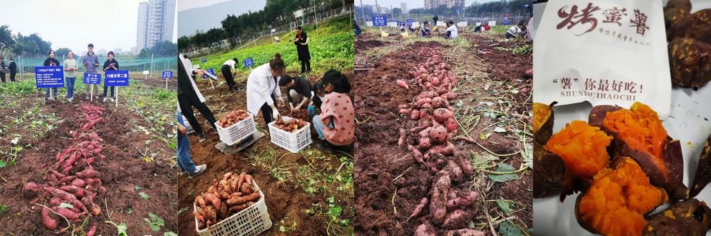 日前,西南大学best365英国在线体育官网农学专业学生《作物生产实践》课程种植的甘薯喜获丰收。为分享学生专业实践教育与劳动教育的成果,2021年11月21日-22日,在学校教务处组织下开展“青春‘薯’农,劳动暖冬”主题活动,包括甘薯知识科普宣传、甘薯免费品鉴、专业课程实践教学与劳动教育成果展示。本次分享的主要劳动成果是学院2019级农学专业学生在《作物生产实践》课程中所收获的甘薯——渝红心薯98号、渝红心薯4号和渝紫香10号。这三个品种由薯类生物学与遗传育种重庆市重点实验室选育,其中渝红心薯98号、渝紫香10号入选全国“三峡杯”十大好吃薯。