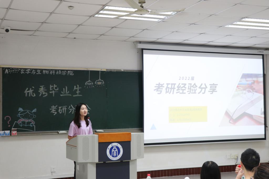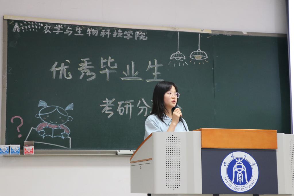 第一位为我们分享的是来自2018级农学专业的韦秘同学,她成功考研到西南大学best365英国在线体育官网作物遗传育种专业。韦秘同学在本科期间积极参加学生工作,也曾担任院学生会新闻编辑部副部长的职位,学生工作与学业成绩两不相误。她向同学们回溯了自己的考研的心路历程,“考研的这几个月里,我成熟了许多,孤独、寂寞、忍耐、承受、等待……”她对考研的总结也提醒同学们要未雨绸缪,“凡事预则立,不预则废”。