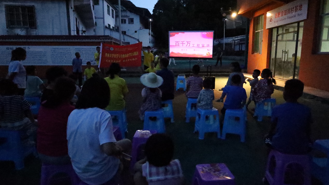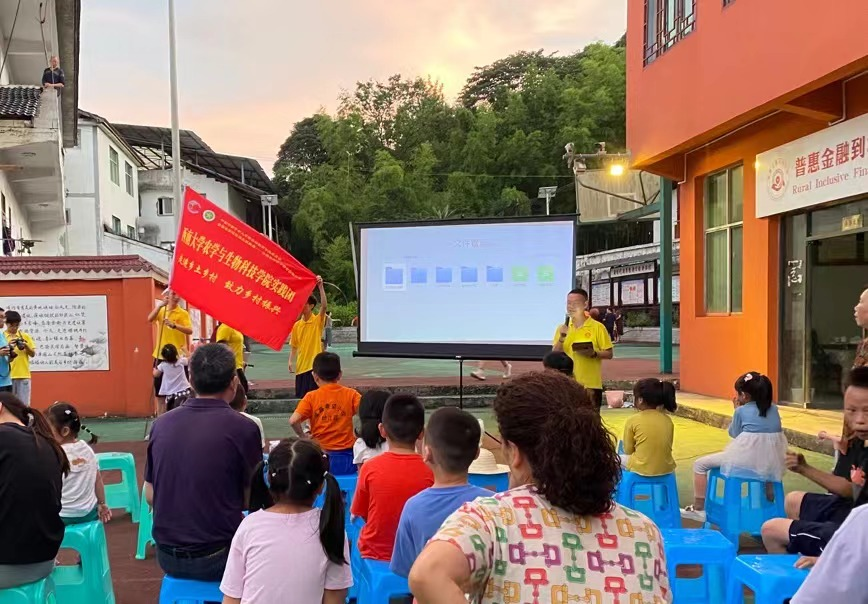 宣讲结束,实践队还在院坝为村民们放映《我和我的父辈》《中国机长》《长津湖》等主旋律电影电影,丰富村民精神文化生活。露天坝坝电影是一代人的记忆,但随着城市的发展已经逐渐消逝,但村民对电影放映的热情依旧高涨。乡村振兴,文化先行,乡村文化振兴任重道远,是乡村振兴的内在牵引力量,更是保证乡村振兴质量的基本支撑。