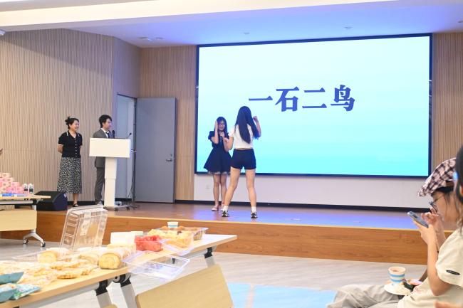 随后的互动游戏环节成为全场的欢乐焦点,全场笑声、掌声、欢呼声不断。同学们在“你来比划我来猜”“谁是卧底”等四个精彩游戏中释放活力、凝聚情谊,优胜者收获了充电宝、文创钥匙扣、小风扇和帆布包等实用奖品。