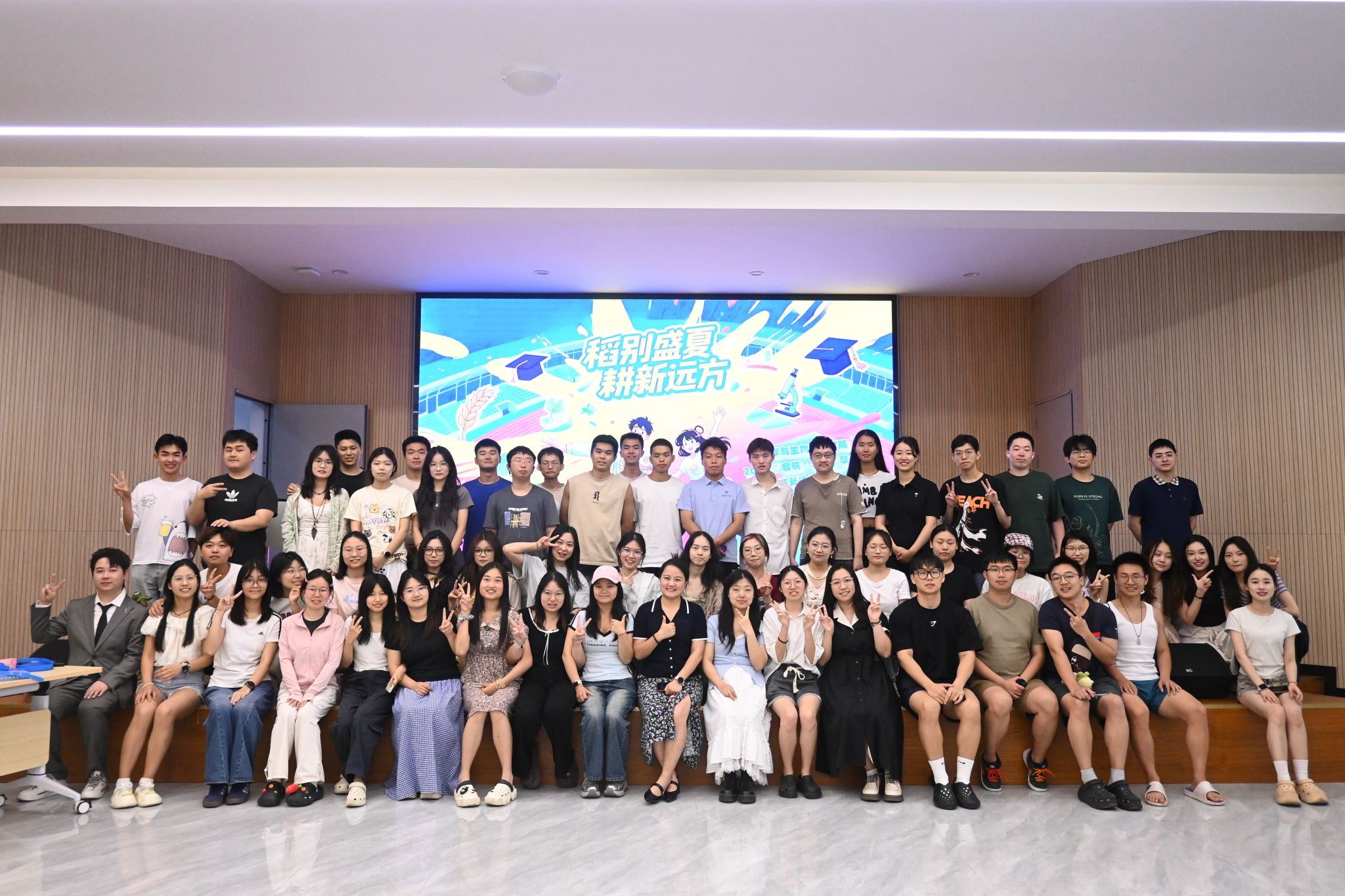 在活动的尾声,全体师生共同观看了承载着四年青春记忆的毕业纪念视频,画面中的点滴瞬间引发阵阵共鸣与掌声,将活动的气氛推向了高潮。最后,大家齐声合唱《凤凰花开的路口》,悠扬的歌声中饱含对母校的不舍与对彼此的祝福。活动在全体人员温馨的大合影中圆满落幕。