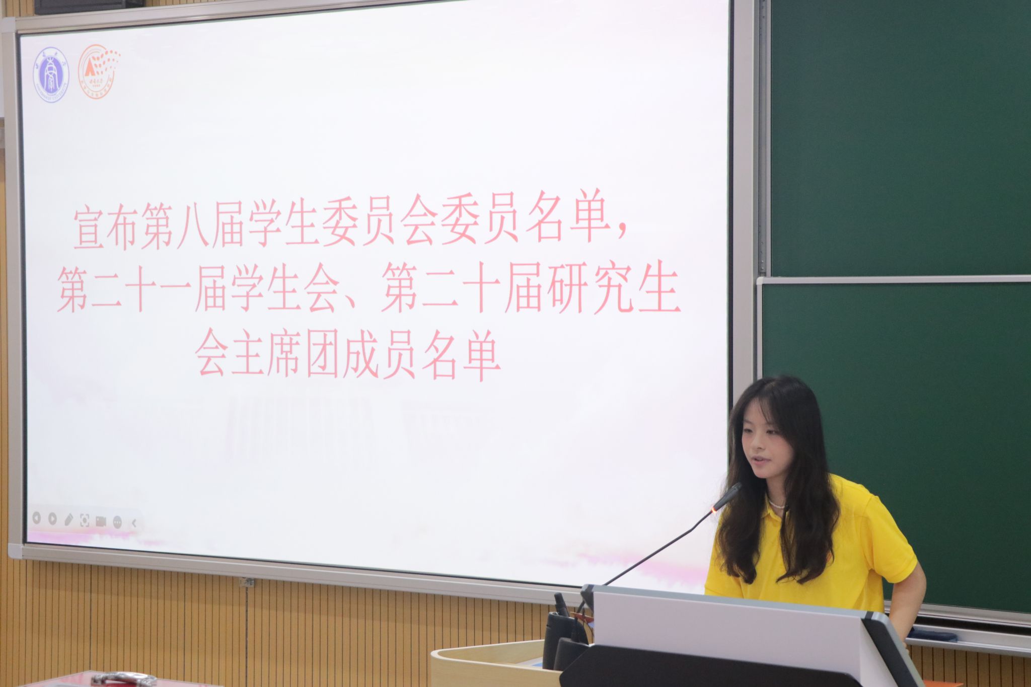 随后,学院学生会主席团成员刘媛媛同学、研究生会执行主席陈朕杰同学分别代表第二十届学生会、第十九届研究生会向大会作工作报告,系统总结过去一年工作成绩与经验,明确未来发展目标与路径,为学院学生工作的持续进步指明了方向。