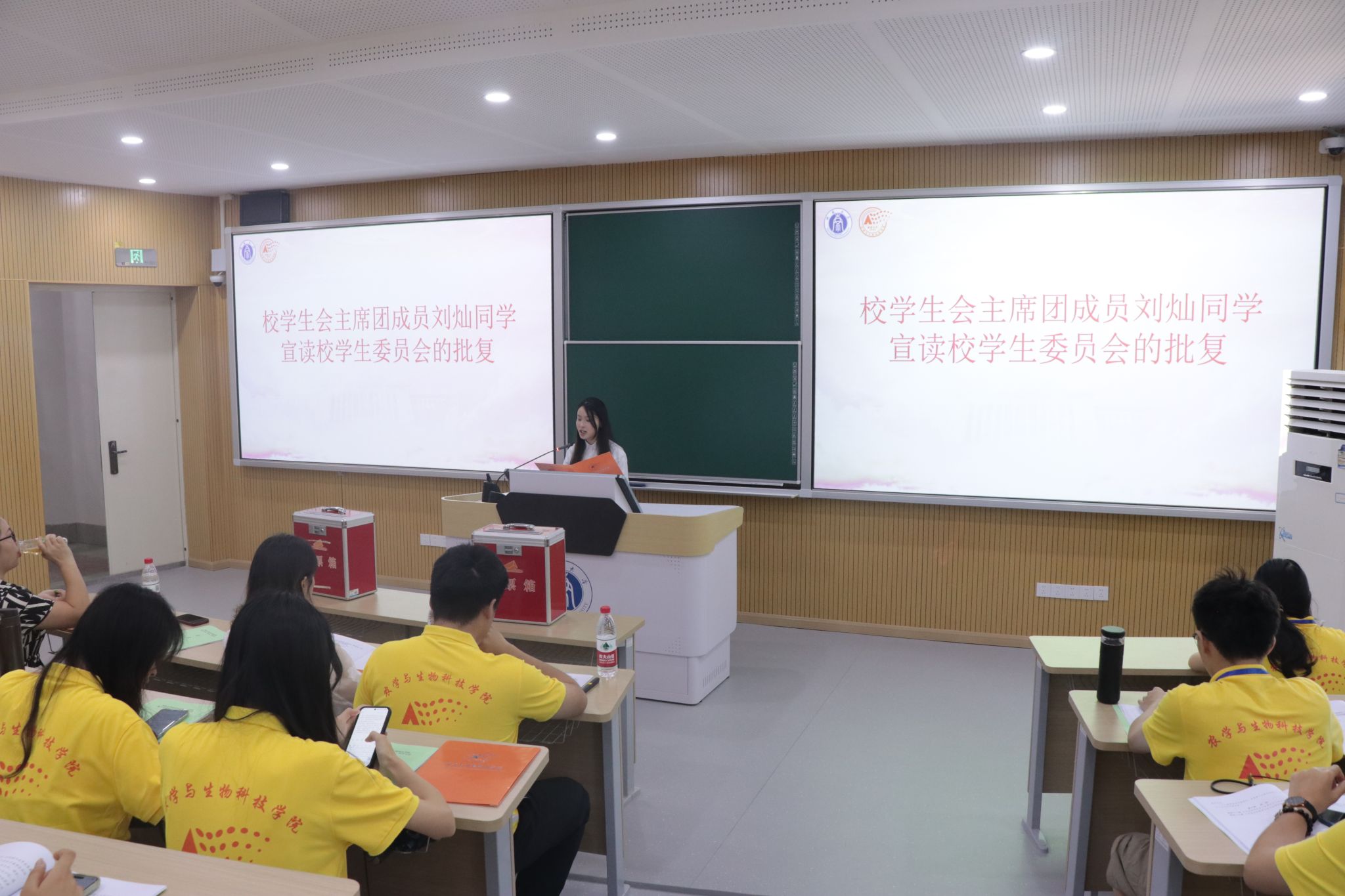 下午2:30,大会在庄严的国歌声中正式拉开序幕。校学生会主席团成员刘灿宣读了西南大学学生委员会的批复,对学院学生会和研究生会的工作给予充分肯定,并对未来发展提出殷切期望。