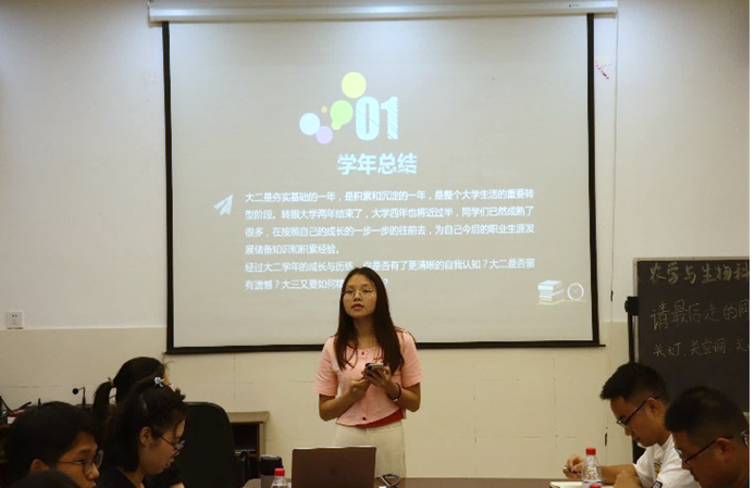 时光飞逝,流水悄然。在大二即将结束,大学生活已然过半之际,为了帮助同学们做好大三学习生活规划,同时更好地思考未来职业生涯,6月24日下午,由2020级区域一班和区域二班联合举办的“不负青春,与梦同行”交流分享主题班会拉开了帷幕。会议邀请了大三、大四年级区域专业优秀学生代表王卓雅、李欣和刘玲洁进行经验分享,2020级区域1班班主任陈琼、区域2班班主任李燕、辅导员王皓、区域系教师徐鑫以及2020级区域专业全体学生共同参加班会。会议从学生代表学年总结、优秀学长学姐经验分享、班主任及导师发言、优秀寝室代表分享和辅导员发言等六个方面展开,班会由区域1班李洁同学主持。