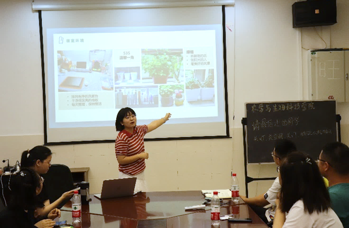 农村区域发展专业1班的楠园一舍535寝室在历次学院的安全卫生检查中获得“优秀”等级,并多次获得“流动红旗”荣誉称号,在5月学院举办的寝室风采大赛获得一等奖,本次主题班会特别安排优秀寝室代表进行分享发言。