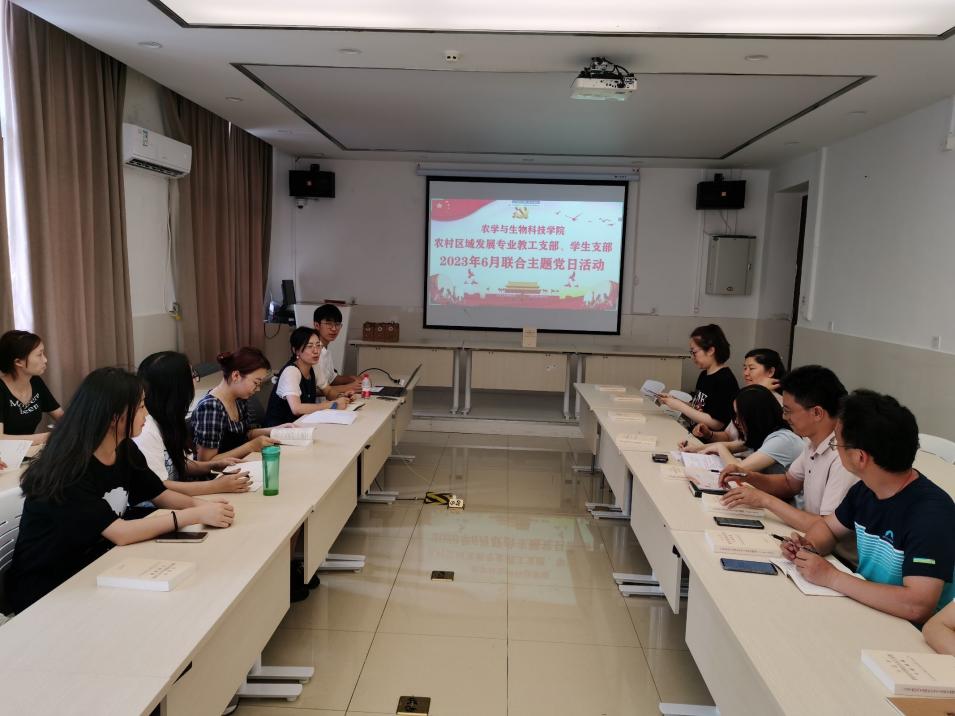 为深入开展学习贯彻习近平新时代中国特色社会主义思想主题教育,着力丰富主题党日活动内容和形式,提升主题党日活动质量,2023年6月9日下午,best365英国在线体育官网农村区域发展专业教工支部、学生支部在37教207会议室开展师生党支部联合主题党日活动,学院党委副书记郑莉佳同志作为区域教工支部联系领导参加了此次活动。活动由本科区域支部书记白祯主持。