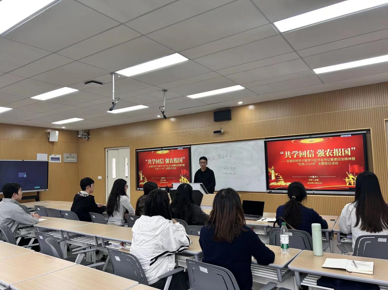 交流发言环节,来自西北农林科技大学、华中农业大学、南京农业大学、华南农业大学等多所高校农学院党支部代表先后分享学习心得。各代表结合本校学科特色与实践经历,讲述了在作物育种、智慧农业、黑土地保护等领域的科研与服务故事。这些实践案例让西南大学农学二支部的参会成员深受触动,进一步坚定了“学农爱农、强农兴农”的信念。