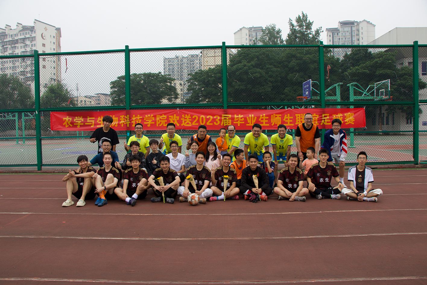 五月山城,光耀缙云,为欢送2023届毕业生,营造良好的体育运动氛围,增进师生情感交流,我院于5月28日在第四运动场举行了了一场师生足球友谊赛,由学院教职工男子足球队对阵学院学生男子足球队。球场上,平日在教学科研岗位兢兢业业、辛勤耕耘的老师们与青春洋溢、激情满满的学生们一起切磋足球技艺,挥洒汗水,共享运动的快乐。