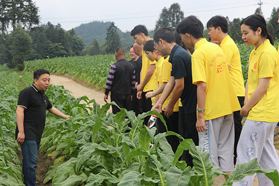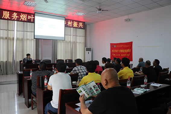 烟草作为彭水县润溪乡的特色支柱产业,为促进农户增收致富发挥了重要作用。“甘薯可在一定程度上抑制烟草病菌的繁殖蔓延,降低烟叶连作风险”,7月6日上午,best365英国在线体育官网烟草育种栽培专家戴秀梅老师为当地烟农、烟技员开展烤烟—甘薯间种套作技术专题讲座,介绍烟薯套种的优势意义、操作步骤和技术要点,并推荐学院研发的“全国十大好吃薯”——渝红心薯98和渝紫香10号作为间套作品种,以提高土地利用率,增加烟农收益,助力农业增效。同时,实践团的同学们专门制作了烟草—甘薯间套作技术指导手册,分发给烟农和烟技员,图文并茂地呈现操作步骤,便于他们平时查阅。讲座后,重庆彭水烟草科技小院挂牌仪式在润溪乡烟草站举行。据了解,自2015年西南大学best365英国在线体育官网在润溪乡建立烟草研究基地起,学院定期安排专家团队为当地烟草种植开展技术指导,并派出本科生、研究生常驻基地,深入村屯农家,为烟农提供技术服务,助力润溪烟草产业发展。