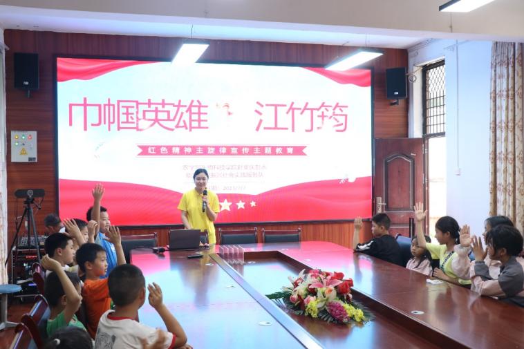 在“以德育心”课堂上,实践团沈益冰同学向小朋友们深情讲述了巾帼英雄江竹筠的故事,她以重庆红色革命基地白公馆和渣滓洞引入,介绍了“江姐”的生平事迹,以及她面对敌人的严刑拷打,始终坚贞不屈、大义凛然的崇高革命精神。