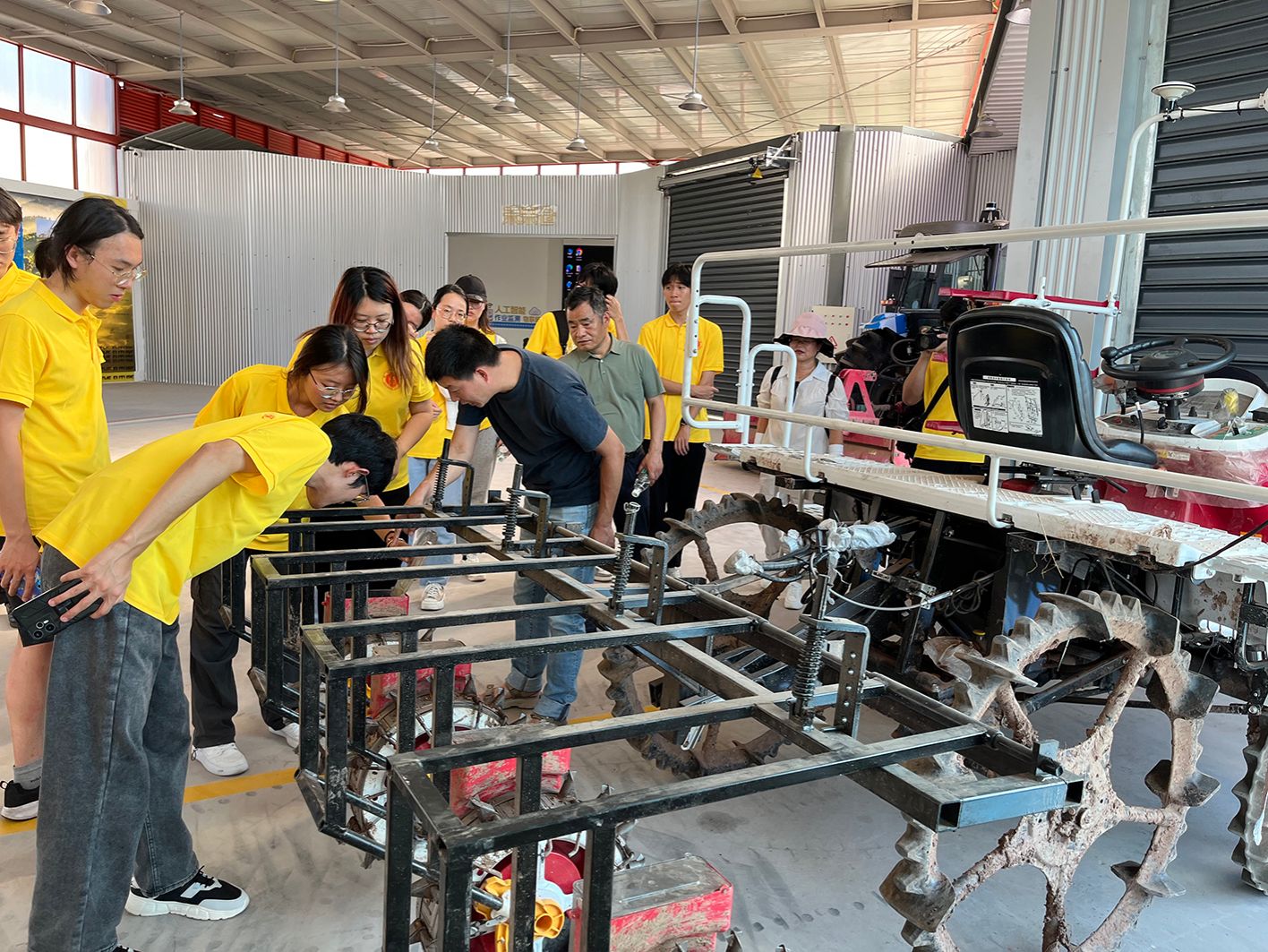 下午,在“江小白·未来农场”,现代智能农机的运用让学生们大开眼界。未来农场智能农机已经投入生产实践,智能农机依托北斗系统、物联网技术等现代技术,能做到多机互联,自动化、智能化操作,实现精准农业管理,提高当地油菜、高粱等作物产量和质量的同时减少人力成本和劳动强度。在观摩了无人操控农机作业的现场演示后,实践队员刘听尘同学感慨道:“老师课堂上讲过的无人驾驶农机作业,今天终于亲眼见到了,农业生产不再是面朝黄土背朝天”。