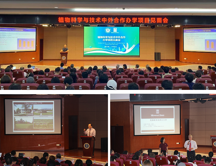 值2019级植物科学与技术(中外合作办学)专业2019级学生毕业之际,合作高校密苏里州立大学(MSU)副校长布莱德·博登豪森,率MSU山林校区校长兼MSU环境植物学与自然自然系主任Hwang Chin-Feng(黄晋丰)、MSU中国项目办公室主任Liu Dan-Dan(刘丹丹)、MSU环境植物学与自然自然系老师Chen Li-Ling(陈丽玲),于5月31-6月3日,到访学院,参加了围绕植科专业开展的一系列活动。布莱德·波登豪森副校长一行,是疫情以来MSU领导和老师首次线下访问,学院领导、老师、学生对他们的到访表示了热烈欢迎。